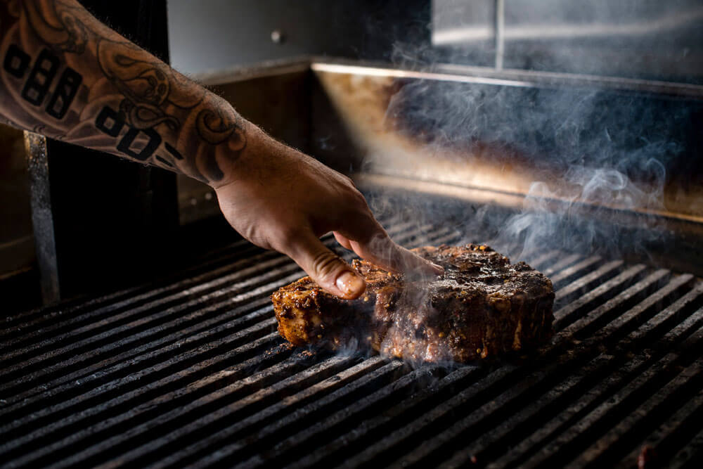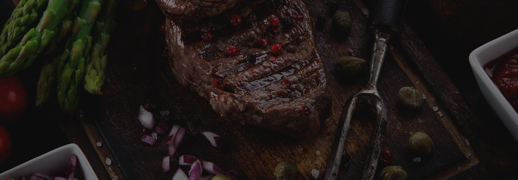 100$This strip steak is coated in a savory blend of crushed peppercorns